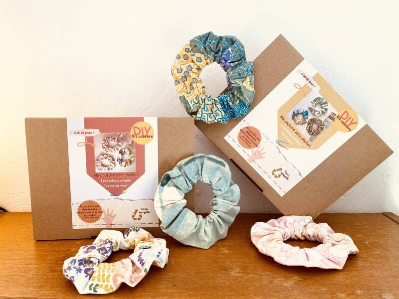 Et la démarche éco-responsable de Jérômine ne s'arrête pas là : les patrons sont conçus pour générer le moins de chutes possible, lesquelles sont réutilisées pour fabriquer des portes clefs ou des chouchous. Dans la boutique de Jérômine vous trouverez également des kits couture pour fabriquer 3 chouchous à partir de tissus upcyclés. Projet accessible aux débutants, petits et grands, et même sans machine à coudre ! Laura coud également de jolies jupes en viscose éco vero, plus éco-responsable que la viscose classique.